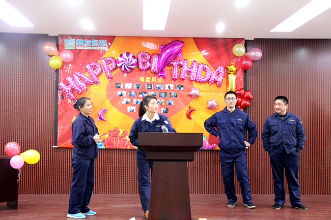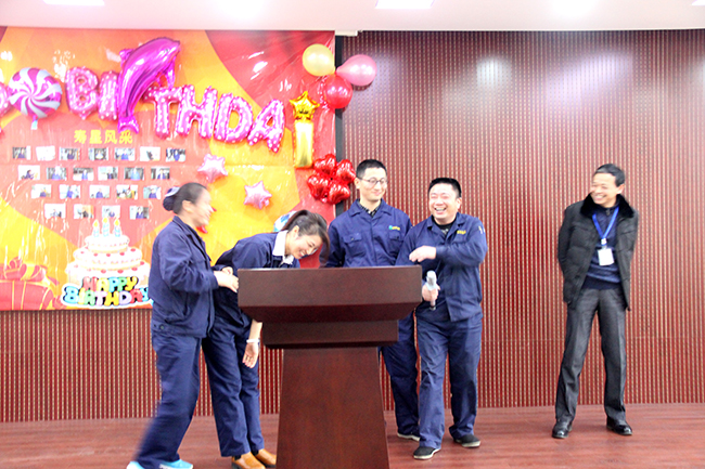 ? ? ? ?2015年11月27日,迎來了十一月份的員工生日會,此次生日會活動地點在多功能廳舉辦。活動現場共有15名生日壽星。遺憾的是還有一部分未能參加此次生日會。在此我僅代表公司向沒能參加生日會的壽星們送上遲到的祝福,祝你們生日快樂!也感謝你們一直以來在工作上的辛苦與努力。