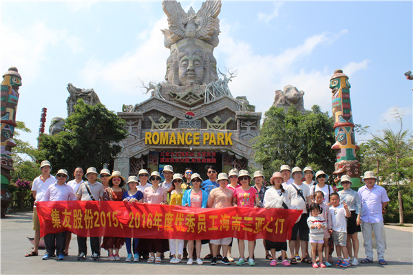 2017年4月16日晚,集友2015、2016年度優秀員工及家屬一行29人乘航班抵達“國際旅游島”——海南三亞。開啟了為期六天五夜的美好旅程,地處國境之南,近臨天涯海角,三亞憑借得天獨厚的旖旎風光,早已成為享譽華夏的旅游勝地。優秀員工及家屬游玩了,著名的蜈支洲島,呀亞達雨林文化旅游區,大小洞天,南天熱帶植物園,天涯海角,亞龍灣玫瑰谷等多個享譽國內外的著名景點,盡情的領略了海島風光。