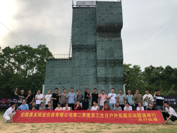 為了增進員工間的溝通與交流,提高員工團隊協作能力,2019年5月24日,安徽集友紙業包裝有限公司組織第二季度過生日的員工前往紫蓬山拓展基地進行戶外拓展訓練。